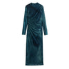 Fashionable Midi Skirt Dress Elegant Pleated Midi Dress for Women Slim Fit Solid Color Long Sleeve Dress with Half-high CollarFeatures: